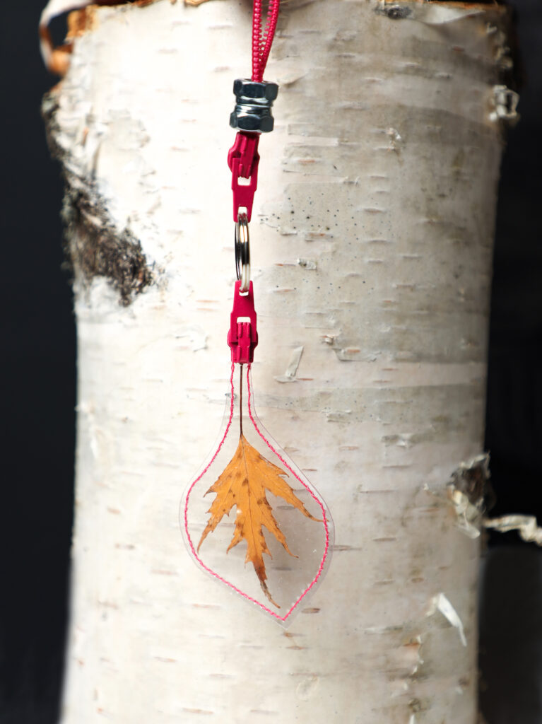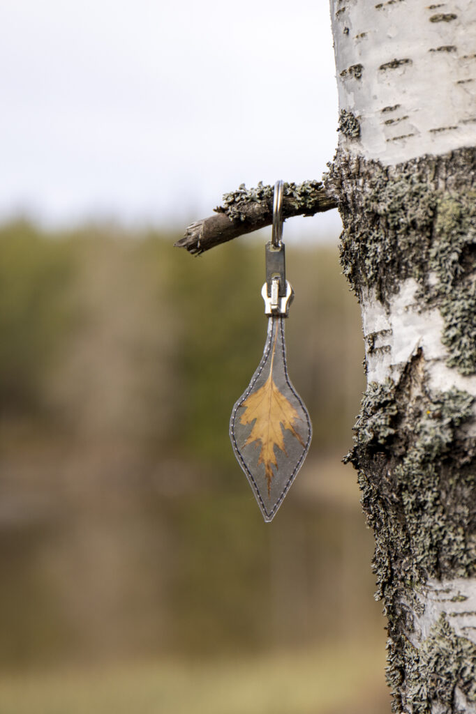 LOIMAAN KOIVU -korussa syksyinen loimaankoivun lehti on ominta Loimaata ja Suomea. Kestävää käsityöläisyyttä ilmentävissä koruissa yhdistyvät luonnonmateriaali ja kierrätys.