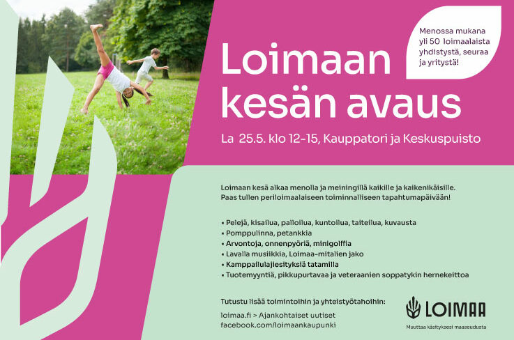 Loimaan kesän avauksessa on kymmeniä yhdistyksiä, seuroja ja yrityksiä, monenlaista tekemistä, torimyyntiä ja musiikkia. Lisää tietoa kesätapahtumasta.