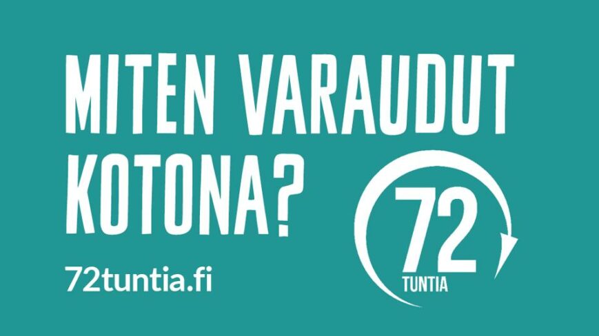 72 tuntia on kotitalouksille laadittu varautumissuositus, joka auttaa selviytymään silloin, kun yhteiskunnan tarjoamat palvelut häiriintyvät. Myös Loimaan seudulla on viimeisen vuoden aikana koettu tilanteita, kun vesijohtovettä ei voi käyttää tai sähköt eivät toimi.