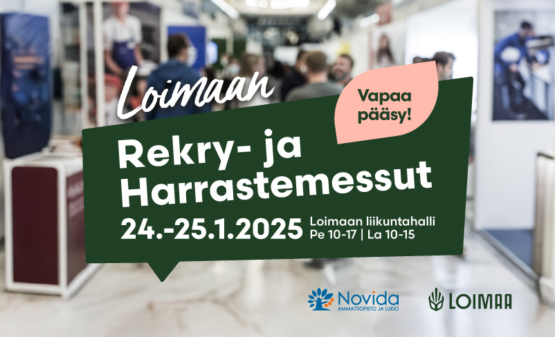 Rekry- ja harrastemessut järjestää Loimaan kaupunki yhteistyössä Novida-ammattiopiston ja lukion kanssa. Vapaa pääsy.