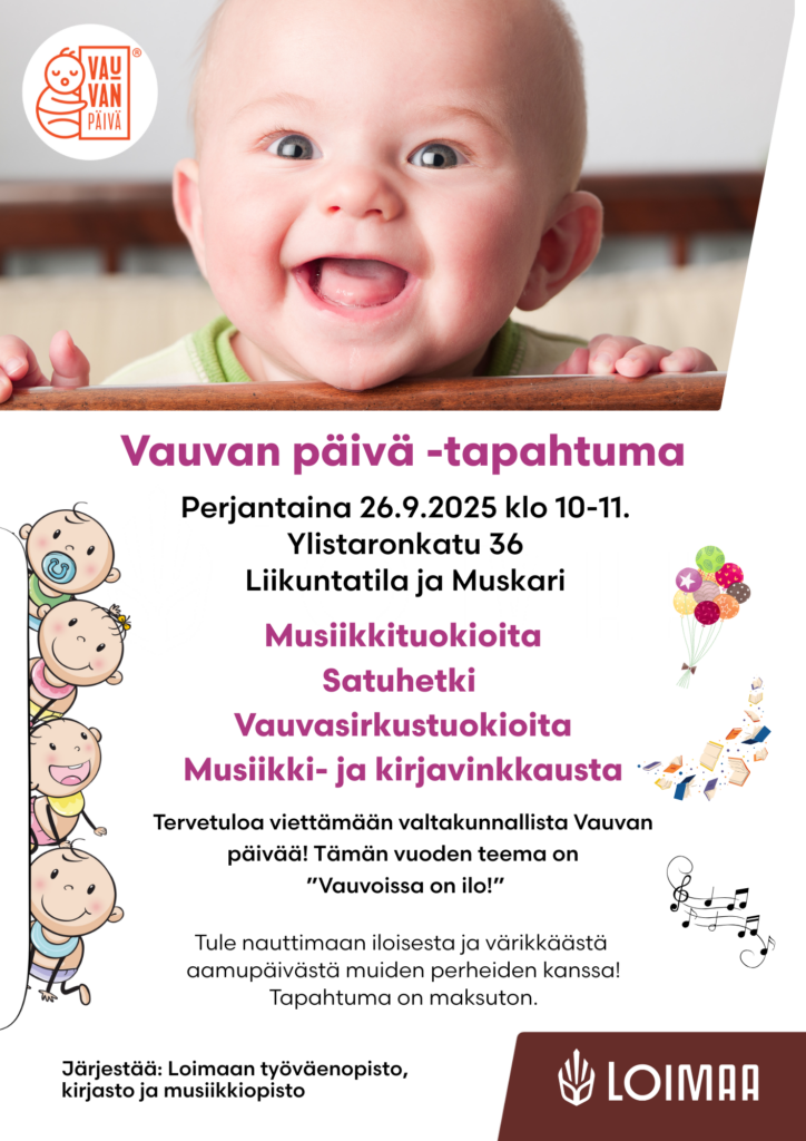 Tervetuloa viettämään valtakunnallista Vauvan päivää perjantaina 26.9.2025 klo 10–11. Tämän vuoden teemana on ”Vauvoissa on ilo!”.