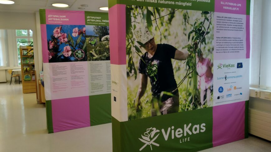 VieKas LIFE (2018-2023) on haitallisten vieraslajien kartoitukseen torjuntaan ja tietoisuuden levittämiseen keskittyvä hanke. Haitalliset vieraslajit aiheuttavat vahinkoa luonnolle, terveydelle sekä taloudelle ja vaikutukset tulevat kasvamaan ilmaston lämmetessä. Näyttelyssä voi tutustua Varsinais-Suomessakin esiintyviin haitallisiin vieraskasveihin jättipalsamiin ja jättiputkiin. Näyttelyssä jaetaan myös ohjeita näiden haitallisten vieraslajien torjuntaan kotipihalta.