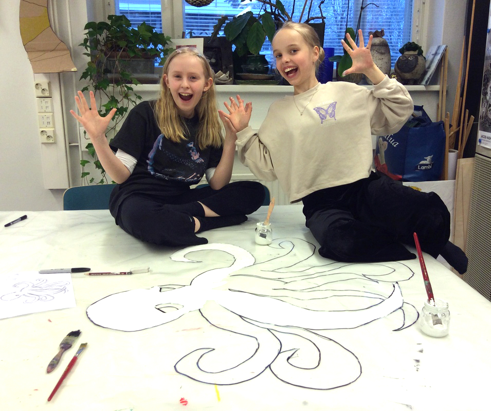 Kuvataiteen perusopintojen 2-ryhmät 7–9-vuotiaille.