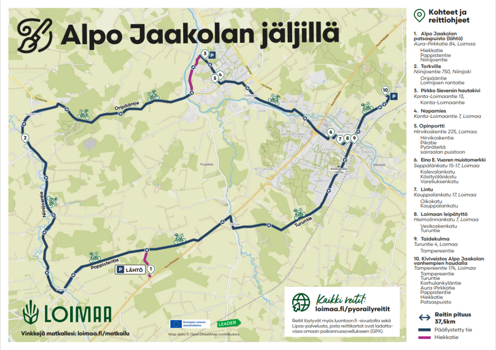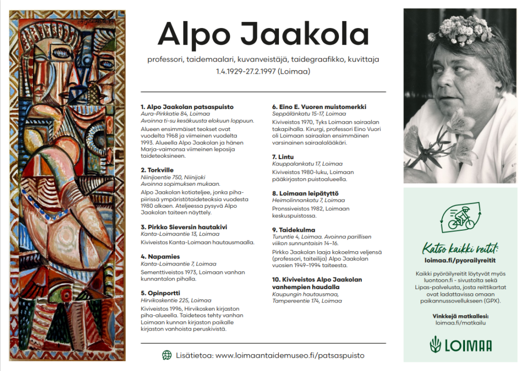 Reitti kulkee taiteilija, professori Alpo Jaakolan (1929-1997) elinympäristössä ja hänen veistostensa jäljillä. Reitin pituus 37,5 km.