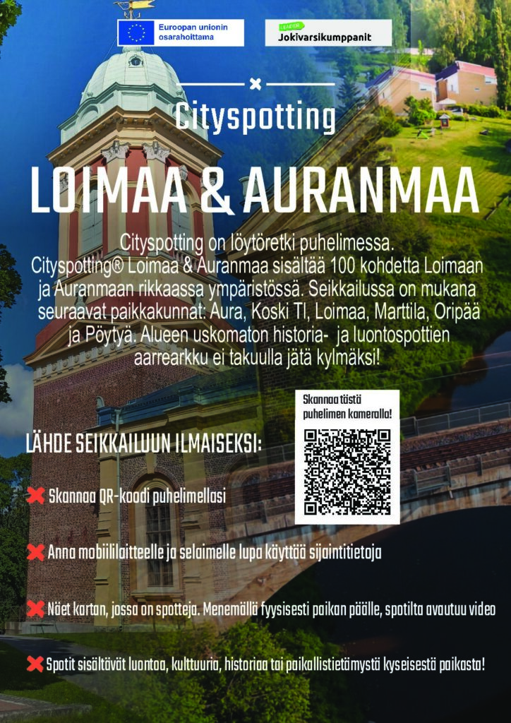 Cityspotting-seikkailu sisältää 100 kohdetta Loimaan ja Auranmaan rikkaassa ympäristössä. Seikkailussa on mukana seuraavat paikkakunnat: Aura, Koski Tl, Loimaa, Marttila, Oripää ja Pöytyä. Seikkailu toteutetaan Löytöretki Loimaan seutukunnalla -hankkeella ja se on saanut toteuttamiseensa EU:n maaseuturahoitusta ja rahoittajana on toiminut Leader Jokivarsikumppanit. Seikkailu on käyttäjilleen maksuton. “Halusimme tehdä seutukunnallista yhteistyötä ja innostaa kaikenikäiset asukkaat liikkumaan enemmän. Cityspottingin kautta löysimme uuden, innostavan keinon lisätä hyvinvointia, oppia paikallisesta ympäristöstä ja vahvistaa alueen vetovoimaa. Samalla se tarjoaa matkailijoille elämyksellisen tavan kokea Loimaan seudun kunnat”, kommentoi Löytöretki Loimaan seutukunnalla -hankkeen vetäjä Eija Martti.