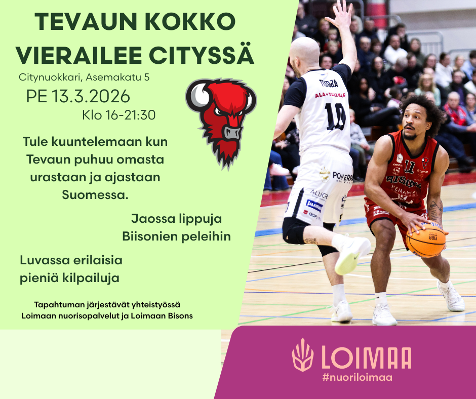 Mukaan mahtuu 34 osallistujaa. Sitovat ilmoittautumiset 10.2. mennessä sähköpostilla jenni.varjo@loimaa.fi